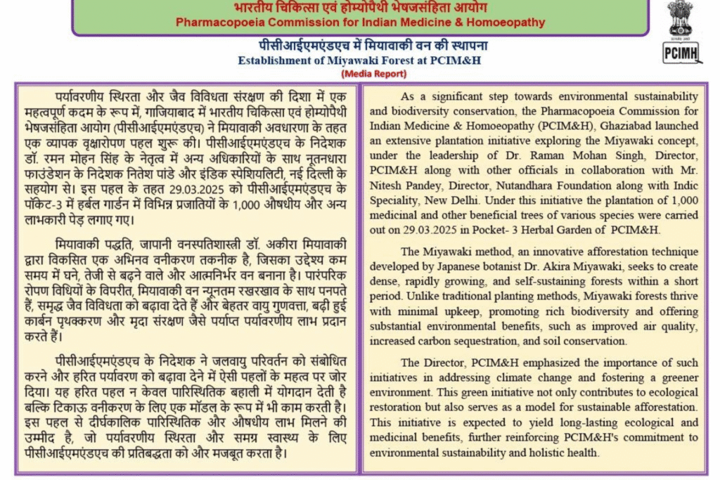This remarkable initiative was made possible through a proud collaboration with the Pharmacopoeia Commission for Indian Medicine & Homoeopathy, and the gracious support of Dr. Raman Mohan Singh and Dr. Jayanti, whose leadership and commitment to sustainable living made this green dream a reality.
